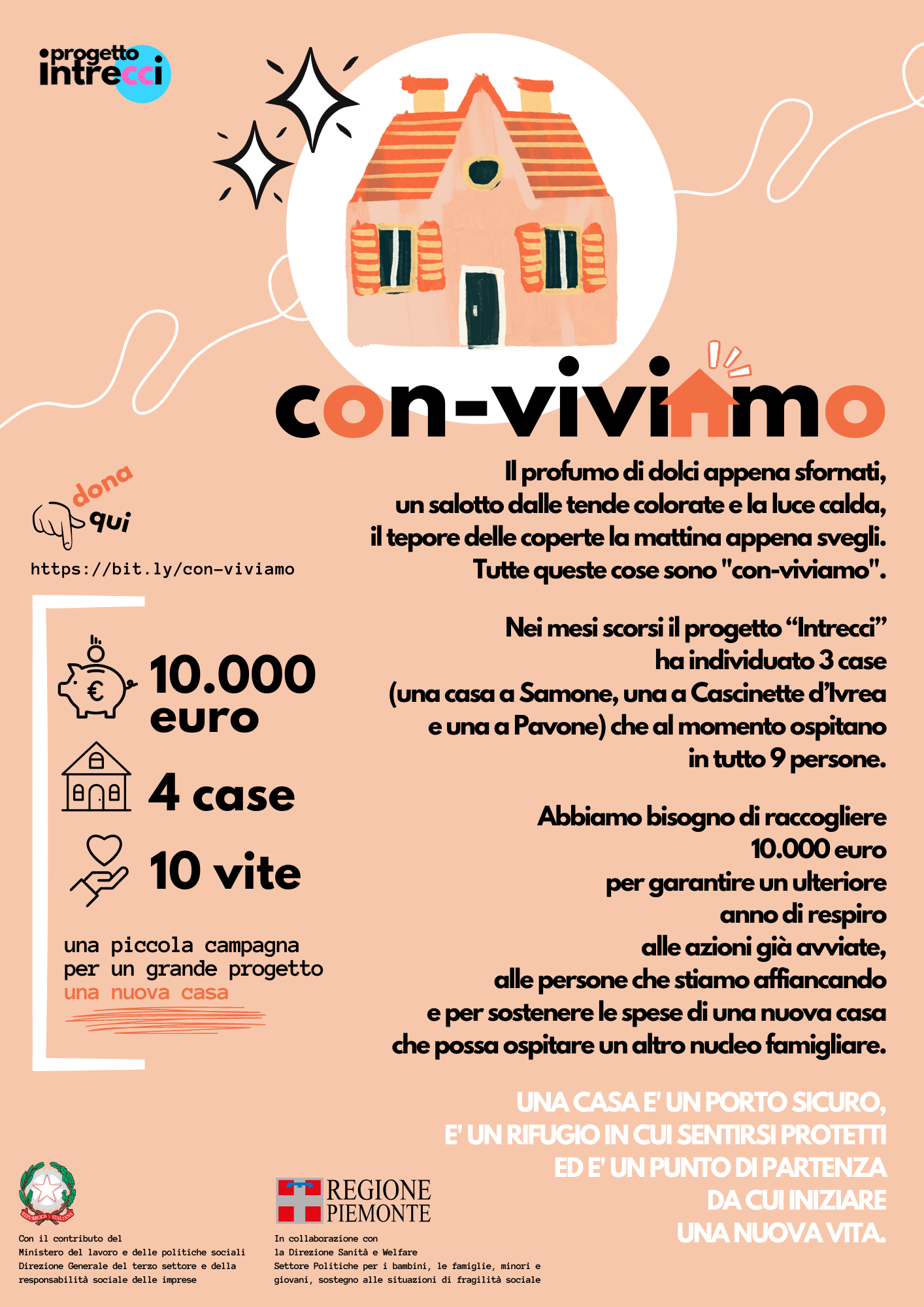 L'obiettivo è quello di raccogliere 10.000 euro per garantire un ulteriore anno di respiro alle azioni già avviate, alle persone che stiamo affiancando e alla gestione di nuove case che possano ospitare altri nuclei familiari.